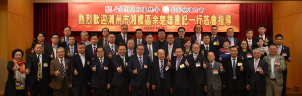 佘楚雄表示,多年來,旅港潮籍人士為潮州市、湘橋區的經濟社會發展貢獻良多,他向諸位旅港潮籍鄉親表示誠摯的敬意和衷心的感謝。展望2019年,希望加強同旅港潮籍人士,香港潮屬社團總會,以及香港潮州商會等潮團的聯繫,共同推動潮州市把握國家「一帶一路」等大好機遇,為潮州市更好更快的發展貢獻力量。