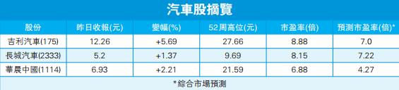 花旗指出,由於換車需求增加,豪華汽車銷量增長和與寶馬的合資企業彈性銷售增長,因此估計華晨中國已接近走出谷底,將目標價從5.7元上調至7.2元,評級亦升至「買入」。