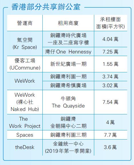 至於內地共享辦公室營運商氪空間(Kr Space),去年更是一鼓作氣,簽下銅鑼灣和灣仔甲級寫字樓的10年合約,當中,時代廣場是其在港的首個落腳點,計劃農曆新年前後開幕。