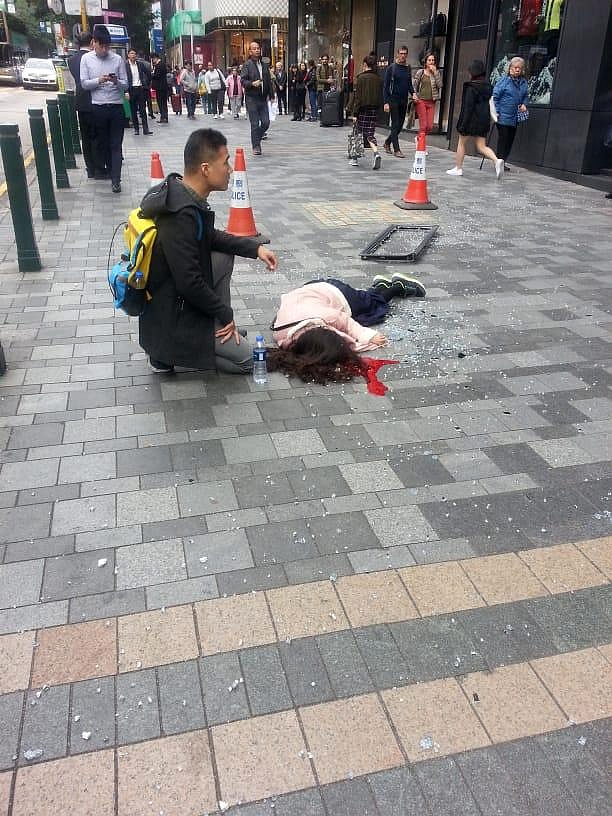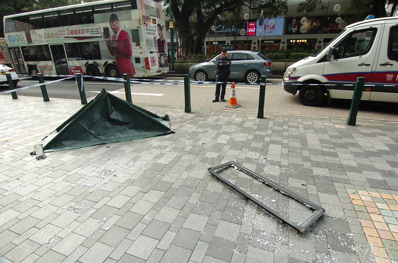 不幸魂斷香江的女死者姓左(24歲),其同行男友姓黃(36歲),據稱持雙程證從廣東佛山來港旅遊,兩人首天抵港便已遇上意外陰陽永隔。現場消息稱,昨晨10時半,兩名事主剛放下行李便擬前往購物,惟途經彌敦道時,一扇鋁窗突然無聲無息從高處墮下,剛好直擊女事主頭顱,她應聲倒地,男事主僅受輕傷,惟目睹女友「爆頭」血流遍地,一時間嚇至手足無措,稍後救護員接報趕至把2人送院救治,惜女事主傷重不治。
