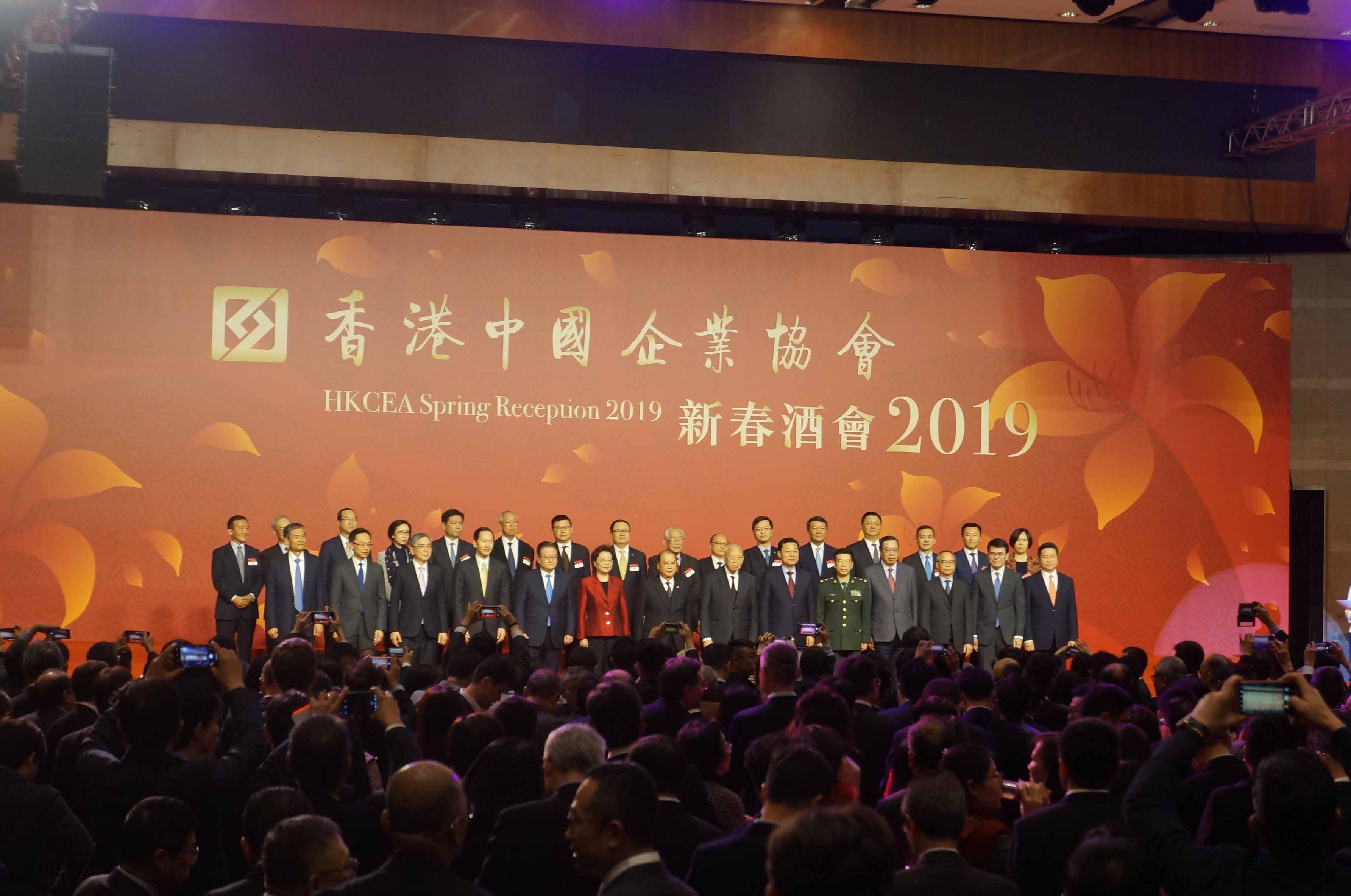 【香港商報网訊】記者張芃芃報道:香港中國企業協會日前假灣仔會展中心舉行2019年新春酒會。全國政協副主席董建華、署理行政長官張建宗、外交部駐港特派員謝鋒、中聯辦副主任仇鴻、駐港部隊副司令員田永江、立法會主席梁君彥、行政會議召集人陳智思、民政事務局局長劉江華、財經事務及庫務局局長劉怡翔、商務及經濟發展局局長邱騰華、政制及內地事務局局長聶德權蒞臨主禮,與該會一眾會董、來自中央駐港機構、駐港中資企業、外國駐港領事官員和香港工商界及社會各界人士等1000餘位嘉賓歡聚一堂,共慶新春。