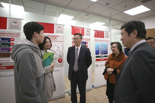 楊潤雄(中)與準備參加香港會計師公會QP專業資格考試的UIC學生交流。