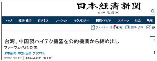据《日本经济新闻》1月23日报道,该报从台当局“行政院资通安全处”的一名干部处获悉,台当局正在编制一份所谓“存在安全隐患”的大陆科技公司“黑名单”,预计将在今年3月底前出炉,华为当然是“榜上有名”。
