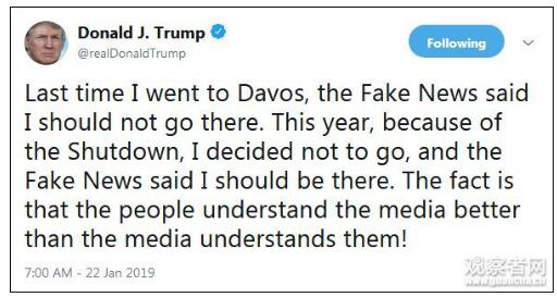 最后挂一挂媒体:“上次我去达沃斯,假新闻说我不应该去。今年我以为关门而不去了,假新闻又说我应该去,”然后来了一句似乎很有哲理的话,“真相是,人们对媒体的了解超过媒体对人的了解”。