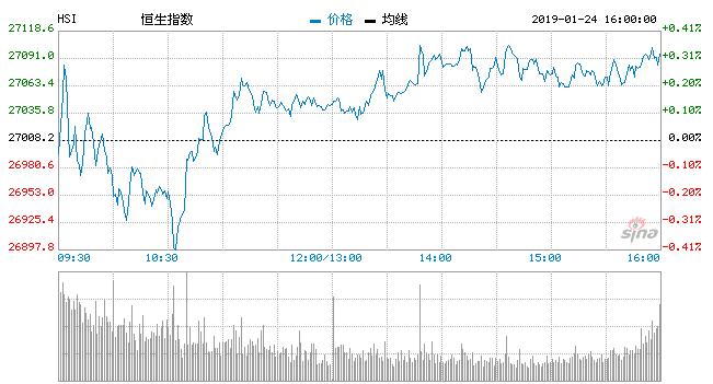 【香港商报网讯】1月24日,恒生指数今日早盘先抑后扬,恒指开盘小幅下行后,及逐步震荡攀升,午后维持高位盘整,大市基本站稳27000点关口。盘面上芯片股随A股集体走高,油服股大幅上升,涨幅居前;石油、医药、科技、地产、航空及汽车股等板块走强;恒指全天最低见26889点,最高报27112点,上下区间不过200余点。
