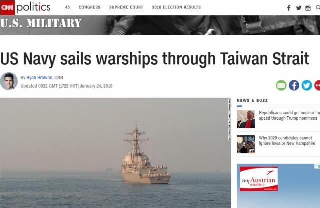 CNN还指出,去年10月和11月,美国海军曾分别派遣两艘舰只过境台湾海峡,且在过境台湾海峡期间都受到了多艘中国军舰的跟踪监视。在去年7月份,美国海军同样也进行了类似的行动。而在此之前,美国海军军舰过境台湾海峡的频率大约为一年一次。
