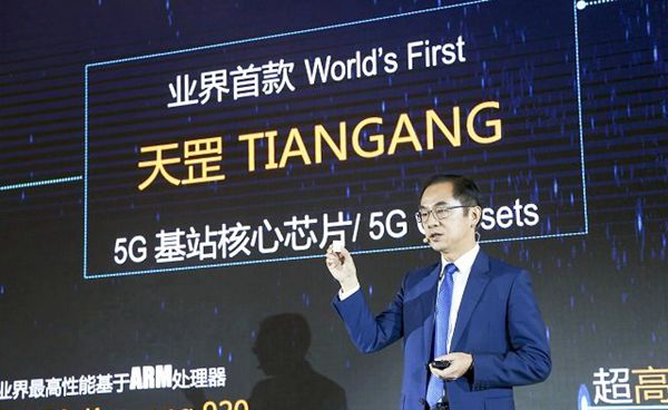 當日,華為面向全球正式發布5G多模終端芯片——巴龍5000(Balong 5000)和基於該芯片的首款5G商用終端——華為5G CPE Pro,以及全球首款5G基站核心芯片——華為天罡,這款芯片在集成度、算力、頻譜帶寬等方面,取得了突破性進展。