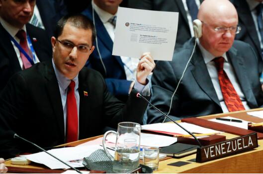 “别再拖延,也别再玩什么游戏。现在是其他国家选边站队的时候了……你们要么站在自由一边,要么站在马杜罗及其暴行一边。我们呼吁安理会所有成员支持委内瑞拉的民主过渡及其‘临时总统’瓜伊多。”