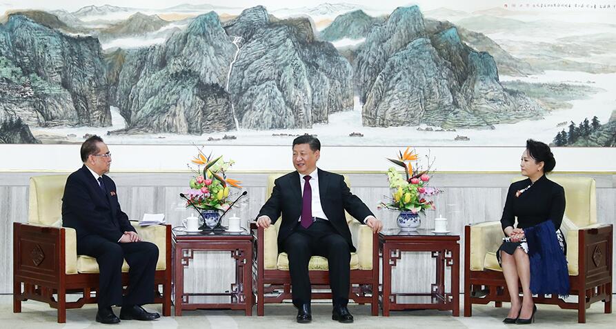 1月27日,中共中央总书记、国家主席习近平和夫人彭丽媛在北京会见以朝鲜劳动党中央政治局委员、中央副委员长、国际部部长李洙墉为团长的朝鲜友好艺术团。 新华社