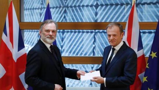 资料图:当地时间2017年3月29日午间,英国启动“脱欧”程序的信函被递交至欧洲理事会主席图斯克手中。由此,英国与欧盟之间的“分手”谈判将正式展开。