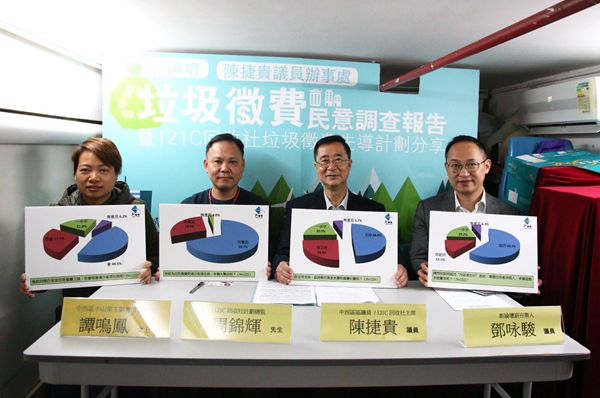 另外,約60%受訪者認為垃圾徵費應最遲於2020年實施。曾在2016年至17年舉行垃圾徵費先導計劃的中西區區議員兼121C回收社主席陳捷貴表示,民意反映多數市民支持垃圾徵費,政府應完善配套,依期落實計劃。
