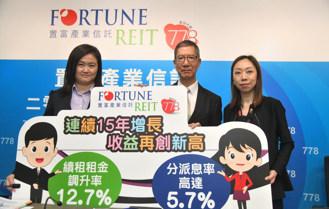 【香港商報網訊】長和系內置富產業信託(778)昨公布全年業績,公司2018年財政年度的可供分派收益錄9.86億元,按年增長1.6%;每基金單位全年分派51.28港仙,按年上升1%,期末則派24.94港仙。受續租租金率及停車場收入提升所帶動,公司收益及物業收入淨額再創新高,分別錄得約1.94億及1.47億元,按年增加3.9%及4.5%。
