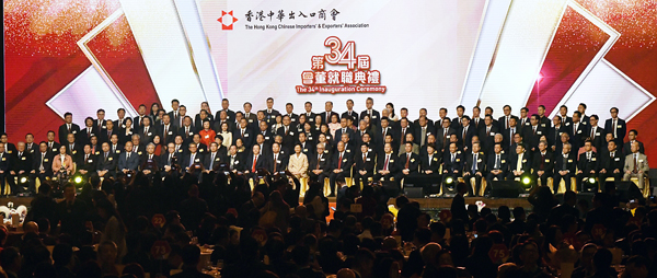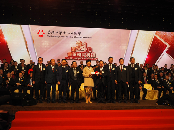 【香港商報網訊】記者郭天琪、張芃芃報道:香港中華出入口商會第34屆會董就職典禮昨日假灣仔會展中心舉行,全國人大代表、禹洲集團董事局主席林龍安榮膺會長,陳勁榮膺秘書長。行政長官林鄭月娥、中聯辦副主任譚鐵牛、外交部駐港副特派員趙建凱等蒞臨主禮,福建省副省長鄭新聰、民建中央副主席張少琴、天津市政協副主席魏大鵬、駐港部隊副參謀長劉朝輝海軍大校、濟南市副市長李自軍、福建省委統戰部副部長陳飛等到場慶賀,近兩千來賓聚首一堂,場面盛大。