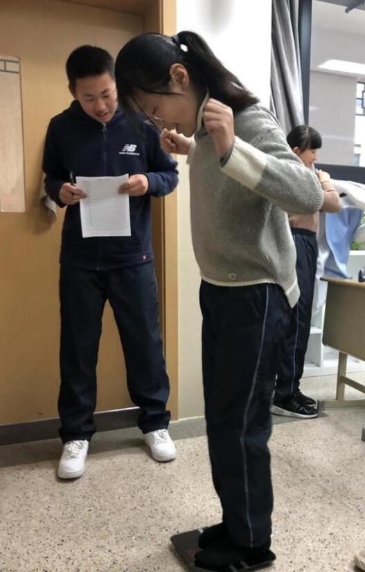 “前段时间和朋友逛商场,看到了商场里面的体重秤,我就突发奇想,想在放假前给他们称下体重,给他们点危机意识,防止年后体重超标。”班主任老师沈炜笑着告诉记者,她和学生们约定,如果体重涨幅超过2公斤,下个学期就要每天跑步。