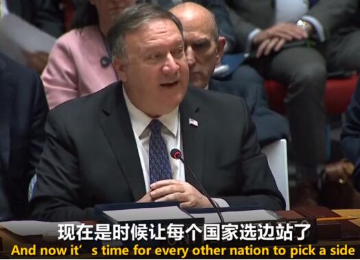 美国国务卿蓬佩奥在安理会紧急会议上发言。视频截图