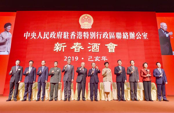 昨日傍晚,中央政府駐港聯絡辦新春酒會在香港會展中心新翼三樓大會堂舉行。 中新社