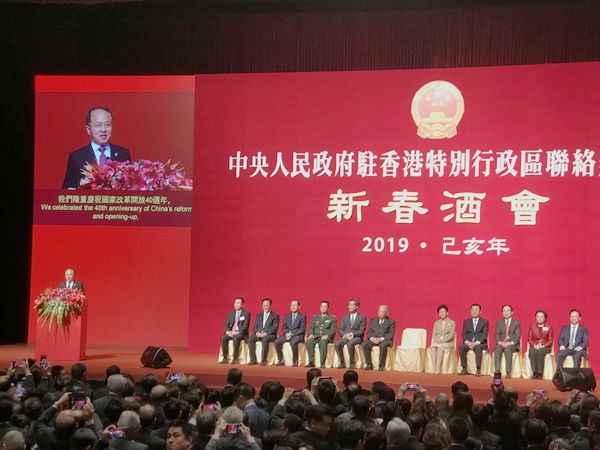 王志民在致辭中回顧了2018年黨和國家事業戰勝各種風浪考驗取得的重大成就,並用三個「好」充分肯定了過去一年香港社會形勢發生的積極變化。他說,習近平總書記的崇高威望特別是「香港發展一直牽動着我的心」和中南海直通香港同胞的深厚情懷,引領香港形勢持續穩中向好;林鄭月娥行政長官帶領特區政府堅定維護「一國兩制」方針和憲法基本法,勇於擔當、積極作為,依法施政和管治成效好;香港社會積極參與共建「一帶一路」和粵港澳大灣區建設等國家戰略,融入國家發展大局態勢好。