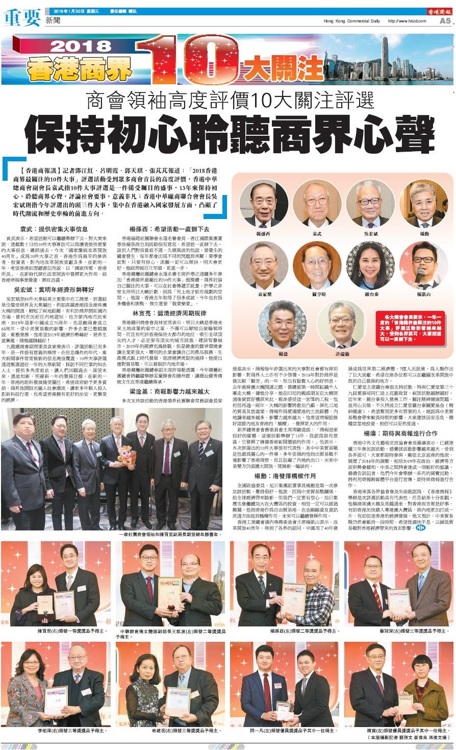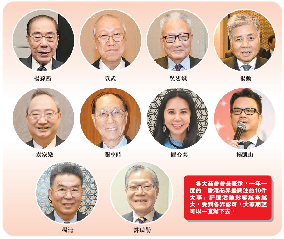 各大商會會長表示,一年一度的「香港商界最關注的10件大事」評選活動影響越來越大,受到各界認可,大家期望可以一直辦下去。