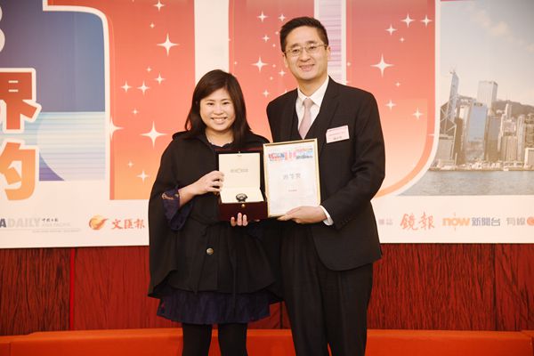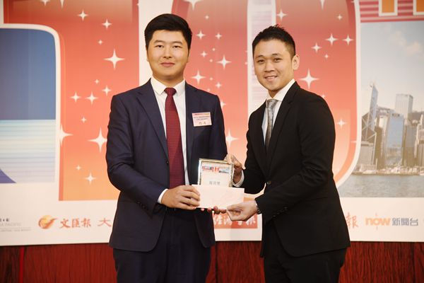 陳寅(左)頒發優異獎獎品予其中一位得主。