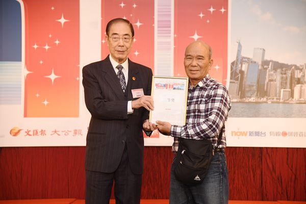 蔡冠深(左)頒發三等獎獎品予得主。