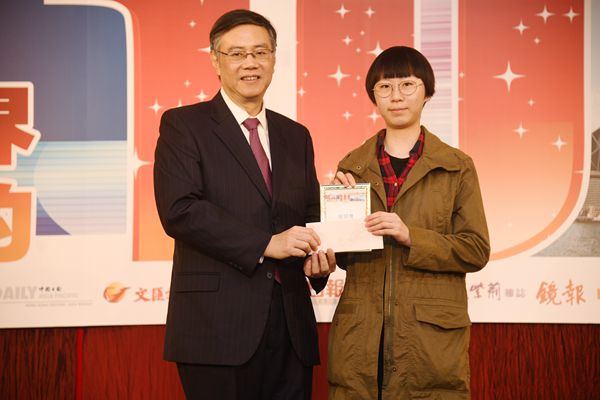 中聯辦宣傳文體部副部長王凱波(左)頒發二等獎獎品予得主。