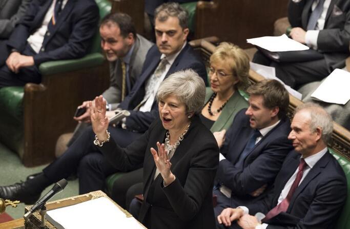 1月29日,在英国伦敦,英国首相特雷莎·梅(前)在议会下院进行辩论。新华社(英国议会供图)