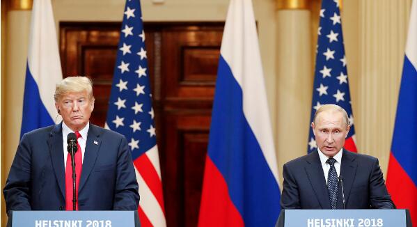特朗普去年7月在赫尔辛基否认情报界结论,引发轩然大波。资料图