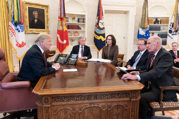 特朗普的这条推特还配了张他们正在开会的照片,照片上有美国国家安全事务助理博尔顿、中情局(CIA)局长哈斯佩尔、国家情报总监科茨(Dan Coats)等人。