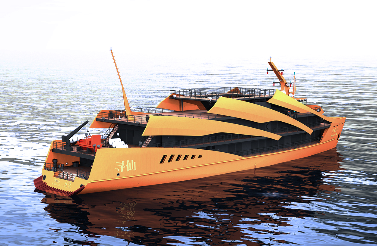 据悉,“寻仙6”是目前国内最好的近海主题情景式豪华游船,总长66米,型宽12.8米,型深4.5米,客位264个,航速16节,共分三层,第一层为舒适客座区,第二层为观景卡座及VIP海景包房,一、二层客舱外均设有观光走廊,第三层则是360°超大全景观光平台,供游客观景拍照、登高望远以及举行主题活动。“寻仙6”打破了“千船一面”的工业化设计,以“潜龙入海”为设计灵感,外观以中国传统文化中的“祥云”和“龙”为素材,塑造了具有强烈视觉冲击力的外在形象,船上设施全部以国际豪华游艇工艺理念打造。