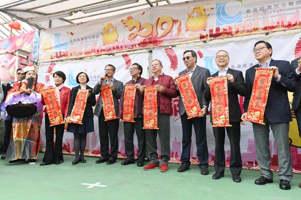 經民聯今年以「豬年乜都Duck」為主題,在維園開設年宵攤位,並邀得包括:陳茂波、陳肇始、民政事務局局長劉江華、經民聯監事會主席林建岳、榮譽主席梁君彥、主席盧偉國、副主席林健鋒、全國人大港區代表張俊勇、洪為民等任開幕禮主禮嘉賓。