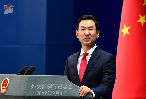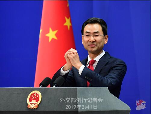 原标题:2019年2月1日外交部发言人耿爽主持例行记者会