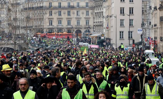 “黄背心”示威者在巴黎街头持续举行抗议活动。(资料图)