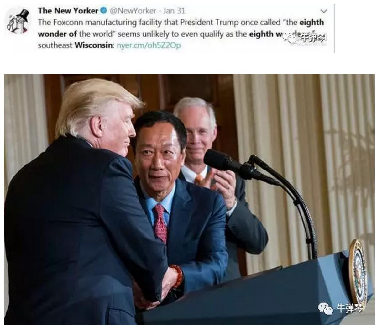 《纽约客》则讽刺:当初特朗普把富士康工厂形容成“世界第八大奇迹”,但如果有“威斯康星州东南部第八大奇迹”,估计这家工厂都排不上号。