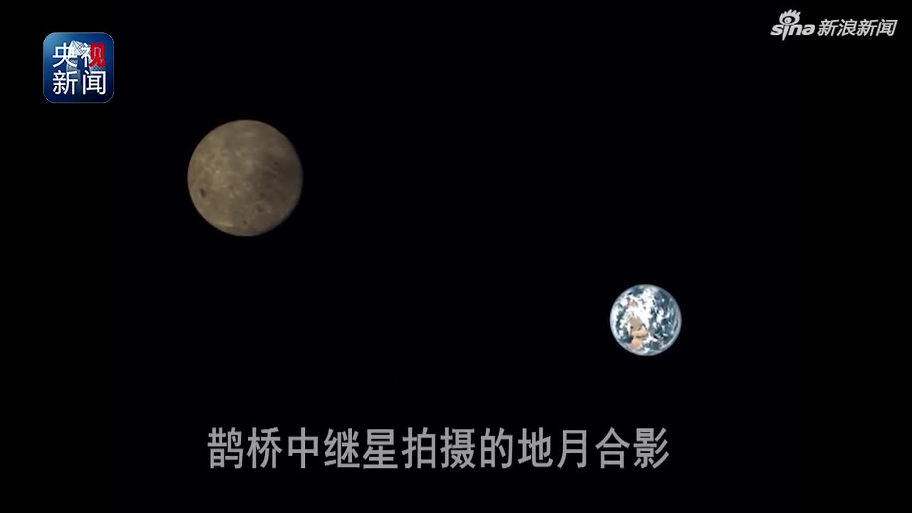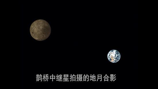 对了,我们还有一个伙伴——中继星。它虽然不在月球上,但是一直帮助我们和地面联系,没有它,我俩就没办法工作。这是它拍到的地球和月球的合影,是不是很美!