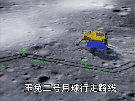 地球上的朋友们,大家过年好!我是玉兔二号,从月球上给大家拜年啦!不知不觉,我来到月球背面已经一个月了。这是我走过的路,是不是已经很远啦,要知道上面的每一步都是人类航天器在月球背面新的一步。