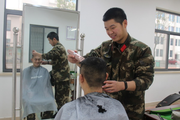 又到了战友相互展现“手艺”的时候了,虽不是专业的,但一梳一剪,耐心细致,无不透露着浓浓情谊。镜子里的自己变得更加的帅气,更加的精神,来年一定可以再好一点!
