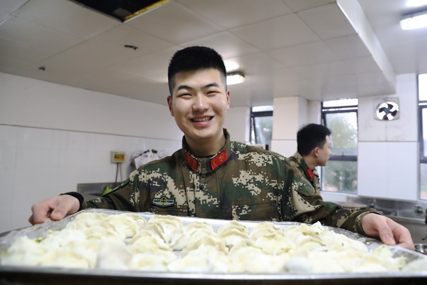 为了让官兵们在除夕夜能够吃上更加丰盛的美食,厨房里多了许多“大厨”,干部、党员纷纷帮厨,来回忙碌,有说有笑,特别是集体包饺子,四张桌子坐满了人,擀皮儿的、和面的、包饺子的,分工明确,每个人脸上都洋溢着开心的笑容,“司务长,馅不够了,再来点…….”“来来来,让一下,让一下,饺子出锅喽……”好一番热闹的场面。