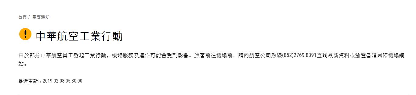 在罷工航班中,包括6班往返香港的航班。具體包括CI933高雄至香港、CI934香港至高雄、CI915台北至香港、CI916香港至台北、CI921台北至香港、CI922香港至台北。