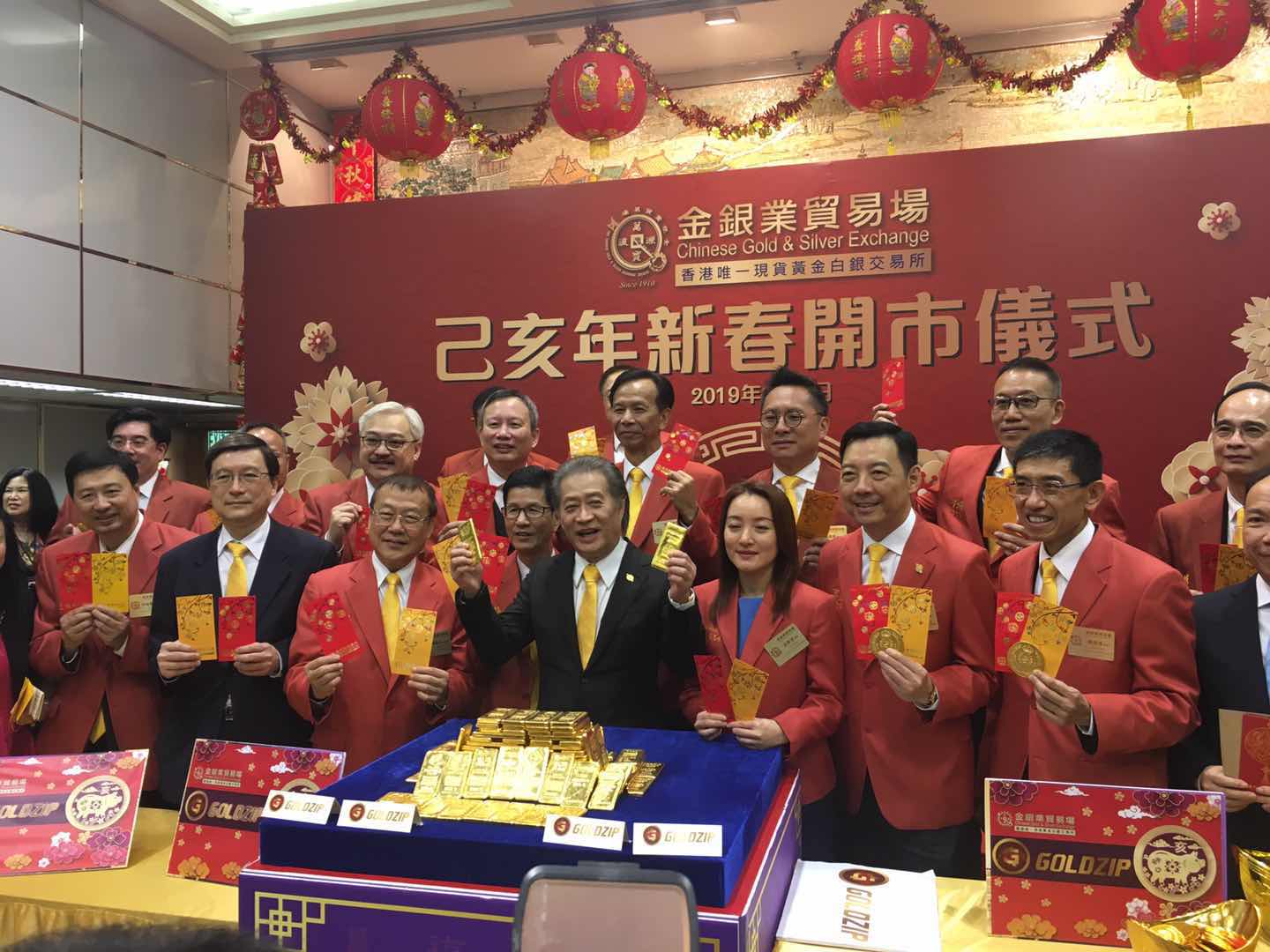 [香港商報訊]記者鄺偉軒報道:在金銀業貿易場九九金於豬年首個交易日紅盤低開,每両報12300元,較上日收報每両12338元,低38元。金銀業貿易場理事長張德熙(圖中)預計,市況波動有利國除金價上升,料首季挑戰每盎司1350美元,若升穿最高可挑戰每盎司1600元。