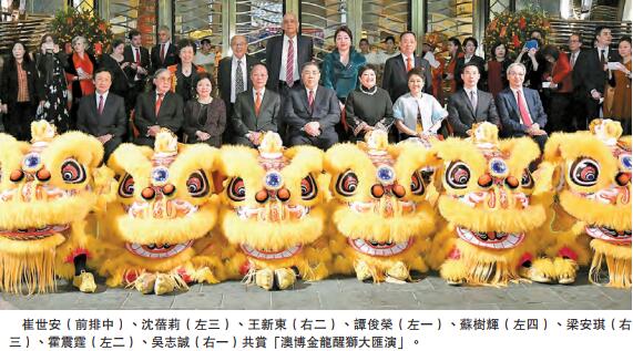 晚宴後,澳博於新葡京戶外廣場舉行「澳博金龍醒獅大匯演」,由澳門行政長官崔世安主持金龍點睛儀式,與廣大市民和旅客歡欣共迎新禧。