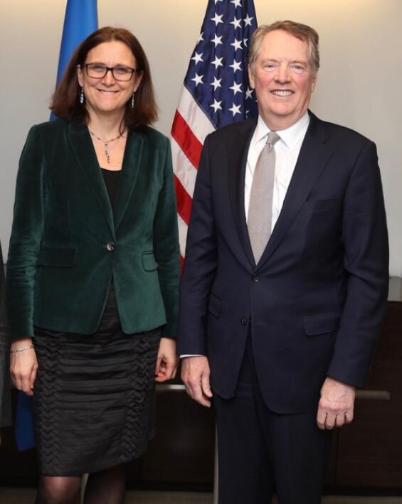 歐盟貿易委員馬爾姆斯特倫(左)與美國貿易代表萊特希澤在近期舉行的最新一輪會談中不歡而散,主要原因在於,美方堅持將農產品納入這份自貿協定談判範圍之內,但歐盟拒絕對此作出承諾。網絡圖片