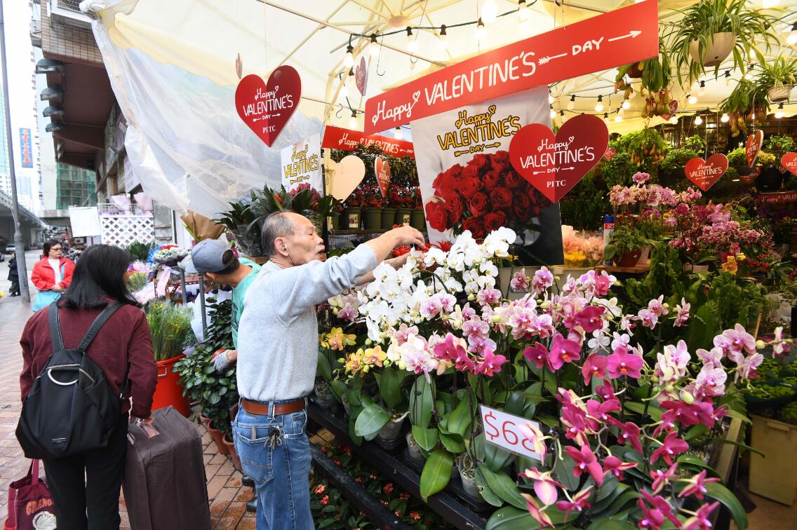 一年一度情人節又是不少男士送花給摯愛的日子,位於太子的花墟已有不少市民到場買花、訂花,花店亦已準備好不同款式的情人節花束讓市民選購。其中一間花店「竣誠花店」也有擺放多款玫瑰花束,售價由688元至2388元不等。其負責人陳小姐表示,目前已接了不少訂單,對今年的訂單數目感到滿意,又看到今年多了市民到場訂花,相信正日會有更多人即場買花。