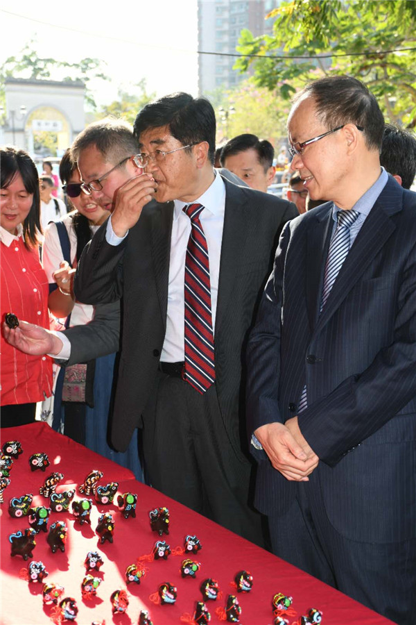 嘉宾们巡展庙会。