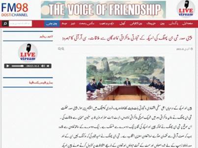 巴基斯坦FM98中巴友谊调频台网站2019年2月16日转发