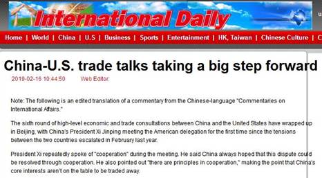 《国际日报》网站2019年2月16日转发