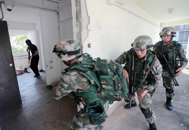 【香港商報网訊】據新華社報道:駐港解放軍海陸空部隊於2月16日展開海空聯合巡邏警戒、陸空協同反恐突襲、陸海協同兵力投送……。春節剛過,駐香港部隊組織的多軍兵種聯合演練便在香港地區的陸海空域上演。駐香港部隊領導介紹,新年伊始便組織多軍兵種檢驗性對抗演練,就是要以此建立起備戰打仗的指揮棒,強化官兵備戰打仗意識,不斷提升部隊實戰化訓練水平。