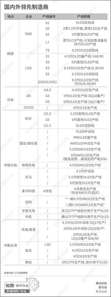在所有制造商里,韩国、日本、中国的制造技术一马当先。其中又以韩国的三星(SMD)和LG尤为突出,这两家公司在OLED产业里牢牢占据着主导地位。LG称雄电视大屏领域,而三星则延续了它老牌手机制造业的优势,制霸着移动端的OELD小屏生产。