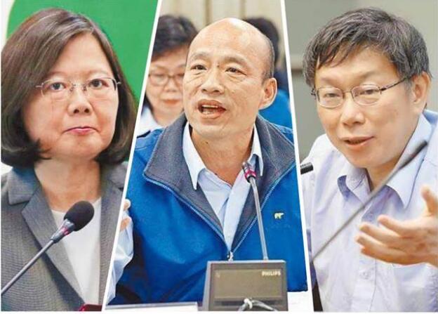 图为蔡英文(左)、韩国瑜(中)和柯文哲(右)(来源:台媒)
