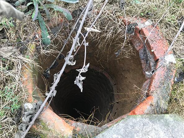 院门前大约50米处,穿过一片橘子林,是冯学华家废弃的老屋,院子里一口深不见底的枯井。冯学华杀害余梅之后,曾将尸体抛入枯井内。