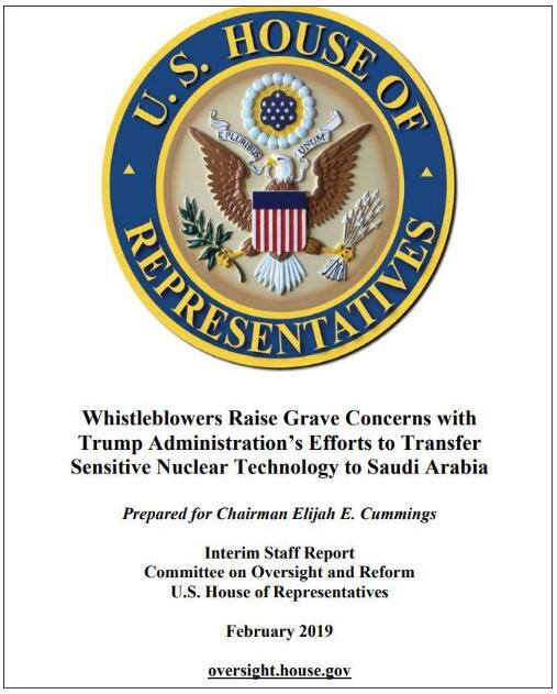 当地时间2月19日,美国众议院监督与改革委员会(Committee on Oversight and Reform)的民主党人发布了一份24页的报告,揭露特朗普政府的一些关键成员不顾国家安全委员会的反对,在特朗普总统就职典礼后的几个月内,就推动一项向沙特阿拉伯转移核电技术的计划。